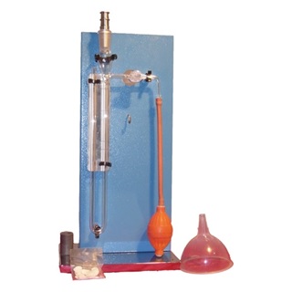 В комплект прибора входят стеклянный манометр с U образной трубкой и клапаном, котоорый крепится к стальному штативу, испытательная камера с диском и плунжером из нержавеющей стали, резиновая груша аспиратора, манометрическая жидкость и 100 дисков из фильрованной бумаги.