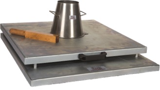 Испытательный комплекс используется для бетонных смесей высокой обрабатываемости и определяет показатель текучести как среднее арифметическое диаметра образца после работы на столе текучести.