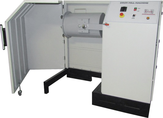 Барабанная мельница состоит из мотор-редуктора, установленного на прочной стальной раме, в комплекте с выпускной воронкой, набором сепараторов и сборником проб. Барабанная мельница оснащена хомутом и запорным механизмом для облегчения доступа к образцу. Крышка барабана легко снимается для чистки благодаря быстросъемному запирающему механизму.